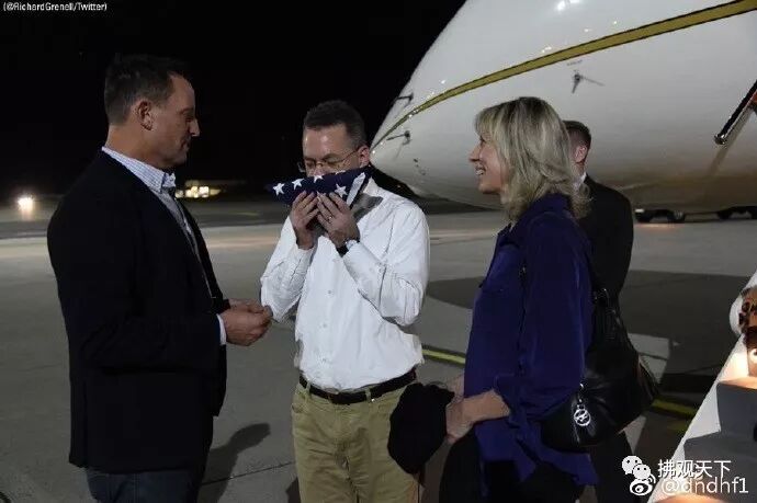 前天,土耳其灋|院终于下令释放布伦森,允许他回国。昨天,布伦森和妻子登上了飞回米國的航班。当航班经停德國机场,布伦森发现米驻|德大|使早已在那里等候他们。双手接过格里奈尔大使送给他的星条旗,布伦森情不自禁深情亲吻起了这面象征自油的旗|帜,比亲吻久别的爱人更深情。