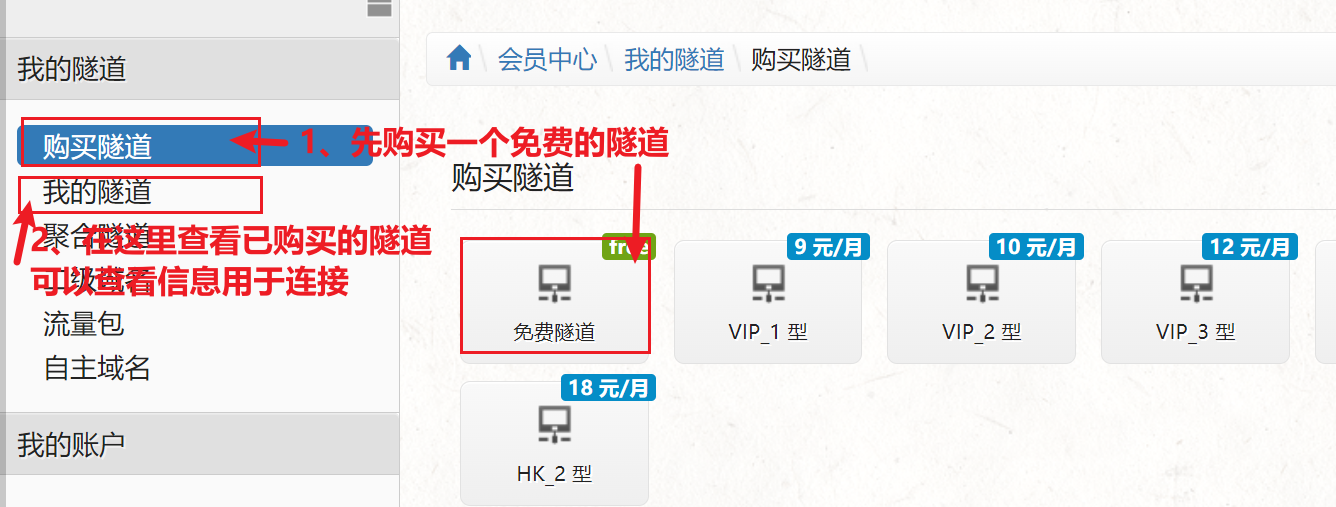 打开官网:https://natapp.cn/ 1)注册-登录 2)购买隧道-获取隧道信息用于后面配置 (