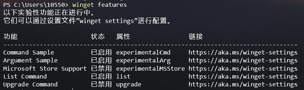 随着 winget 进入到 1.0 正式版,原先那些被暂时放在实验功能的命令参数纷纷「毕业」成为正式功能,因此现阶段你会发现只有一个功能还处于实验功能中: